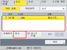 (중지)를 눌러 현재 송신 중이거나 송신 대기 중인 송신 작업을 취소할 수 있습니다. |