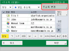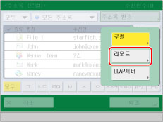 리모트 주소록 및 LDAP 서버를 둘 다 등록할 경우에만 [주소록 변경]이 나타납니다. 기기에 리모트 주소록만 등록된 경우에는 [리모트 주소록]이 표시됩니다.