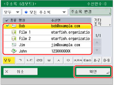 서버 기기 및 클라이언트 기기(본 기기)에 대해 설정된 표시 언어가 서로 다르면 주소록 문자가 깨질 수 있습니다.