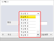서버를 통해 문서를 송신하지 않고 수신인의 IP 주소가 DNS 서버에 등록되지 않은 경우 (사용자)@수신인 IP 주소) 형식을 사용하여 도메인 이름을 입력하십시오.
