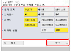 수신 기기의 사양에 따라 수신인 조건을 설정하십시오. 수신인 기기에서 지원되지 않는 조건을 설정하면 송신 에러가 발생할 수 있습니다.