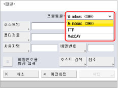 사용 가능한 프로토콜에 대한 자세한 내용은 "키보드를 사용하여 파일 서버 지정."을 참고하십시오.