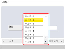 [표시언어/키보드 전환 설정/해제]를 '설정'으로 지정하면 파일 서버 수신인의 호스트 이름 및 폴더 경로가 올바르게 나타나지 않을 수도 있으며 찾아볼 수 없을 수도 있습니다. (See "표시언어/키보드 전환 사용.")