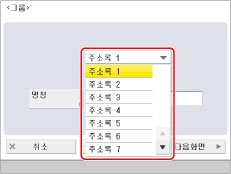 드롭다운 리스트를 누르고 → 번호가 매겨진 주소록 리스트 중 하나를 선택합니다.