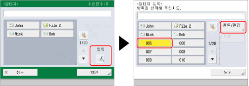 팩스 번호 등록/편집에 대한 자세한 내용은 "신규 수신인 저장."을 참고하십시오.