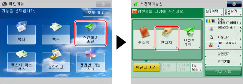 [팩스]를 선택하는 경우 "신규 수신인 저장."을 참고하십시오.