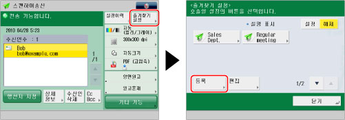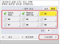 [즐겨찾기 설정] → [등록] → [다음화면]을 누릅니다.