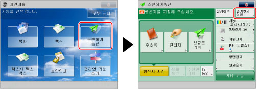 [스캔하여 송신] → [즐겨찾기 설정]을 누릅니다.