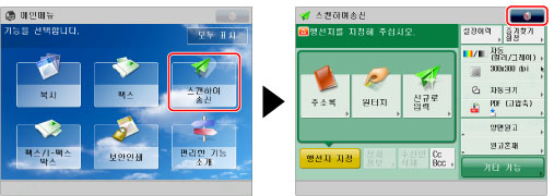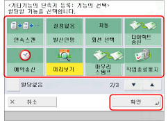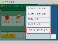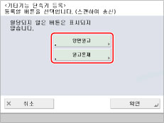 두 가지 기타 기능 단축키가 스캔하여 송신 화면에 표시됩니다. [양면 원고] 및 [원고혼재]가 기본값으로 표시됩니다. 이러한 단축키를 자주 사용하는 기능으로 변경할 수 있습니다.