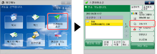 표준 크기보다 큰 원고를 스캔하려면 [긴 원고]를 누르십시오. 스캔할 수 있는 원고의 최대 길이는 630mm 입니다. 표준 크기 원고의 길이는 다음과 같습니다: