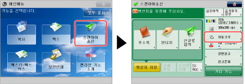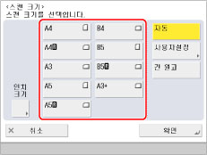 다음과 같은 종류의 원고를 스캔하는 경우에는 [자동]을 선택할 수 없습니다. 원하는 스캔 크기를 선택합니다.