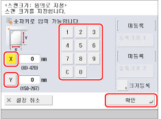 [사용자] 스캔 크기를 설정할 때 다음 사항에 유의하십시오.