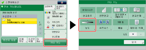 수신인을 지정하고 → [기타 기능] → [농도]를 누릅니다.