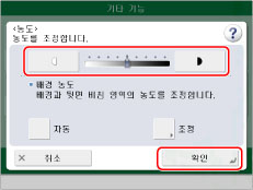 를 눌러 원고의 농도를 조정하고 → [확인] → [닫기]를 누릅니다.