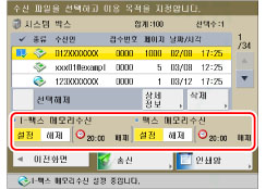 <팩스 메모리 수신> 및/또는 <I-팩스 메모리 수신>을 '해제'로 설정하는 경우 팩스/I-팩스 기능을 통해 수신된 문서가 인쇄되고 시스템 박스에서 삭제됩니다.