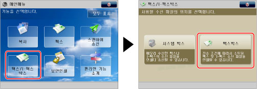 [팩스/I-팩스 박스] → [팩스박스]를 누릅니다.
