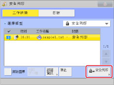 安全列印工作的列印工作編號左側顯示鎖定圖示。