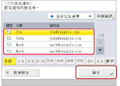 選擇接收工作完成通知的接收者→按[確定]→[關閉]。