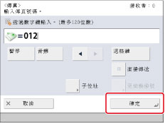 (數字鍵)輸入接收者的傳真號碼→按[確定]。