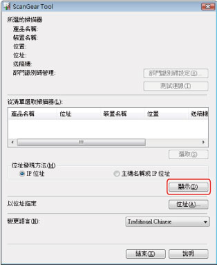 透過按一下[位址]並輸入本機器的IP位址,也可以指定要使用的掃描器。