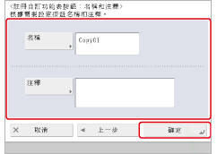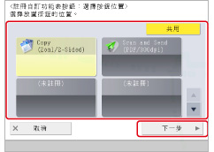 若在「自訂功能表」中註冊常用功能設定(如「影印」、「掃描後傳送」和「掃描後儲存」),也可以在其他機器上使用這些設定。