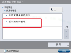 設定「部門識別碼管理」可以從本機器執行使用者認證。