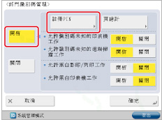 若在步驟2中選擇[開啟],則「部門識別碼管理」已設定。