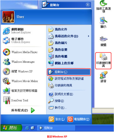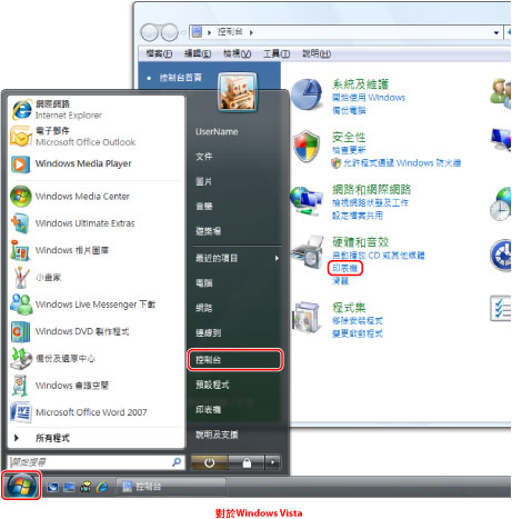 按照以下步驟選擇[印表機]或[印表機和傳真]。