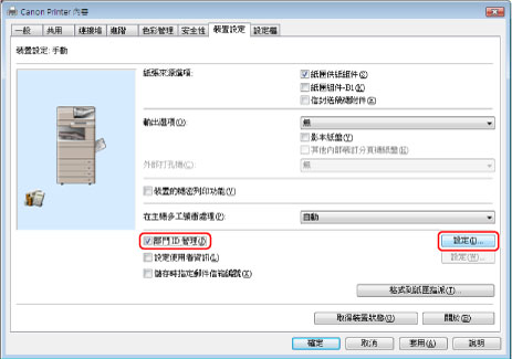本節介紹如何在本機器上設定「部門識別碼管理」以及從電腦列印。