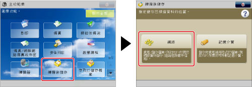 按[掃描後儲存]→[網路]。