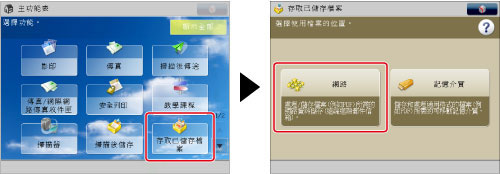 按[功能設定]→[儲存/存取檔案]→[網路設定]。
