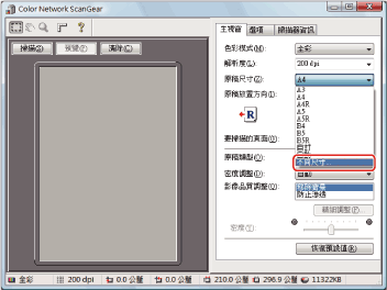 若要掃描的是自訂紙張尺寸的原稿,請在[主視窗]頁中將[原稿尺寸]選擇為[自訂]。此外,在此情況下,所有頁面的寬度都必須一樣。