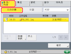 可以從觸控面板顯示螢幕或從「狀態確認/取消」螢幕取消列印已儲存的檔案。