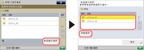 按[檢查儲存資訊]→選擇所需儲存位置→按[詳細資訊]。