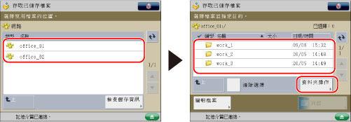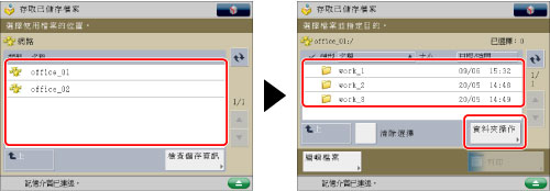 選擇所需的儲存位置→選擇所需的資料夾層級→按[資料夾操作]。