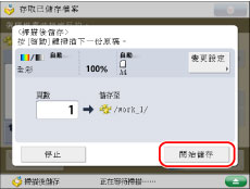 若顯示以下螢幕,最後一批原稿掃描結束後,請按[開始儲存]。