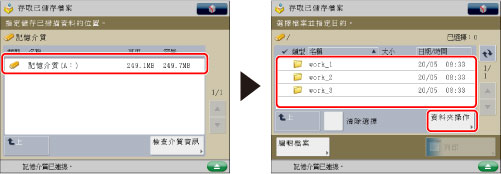 選擇所需的記憶介質→選擇所需的資料夾層級→按[資料夾操作]。