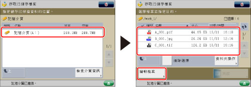 可以檢查記憶介質中檔案的詳細資訊(檔案名稱、位置、修改日期等),以及添加或刪除檔案。