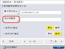指定用於傳送電子郵件/網際網路傳真的郵件伺服器。