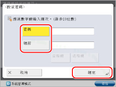 輸入[密碼]和[確認]→按[確定]→[確定]。
