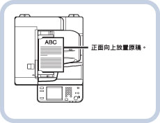 可以縱向或橫向放置原稿。但是,橫向放置的原稿的掃描速度稍慢於縱向放置的原稿。 使用「預設縮放」掃描時(如將A4原稿放大到A3紙張上),請橫向放置原稿。