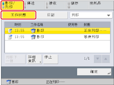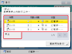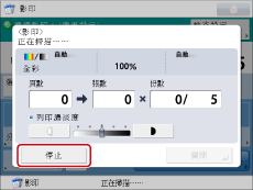 若在本機器影印或等候影印時出現的快顯螢幕上按[停止],則可以取消正在影印的工作或為等待影印的原稿掃描的最後一份工作。