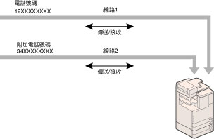可以透過安裝「Super G3雙線傳真板」為本機器添加附加線路。要為本機器添加線路,必須為附加線路註冊單獨的電話號碼。
