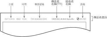 要顯示/列印「傳送者名稱」而不是單位名稱,請設定「選項」中的[傳送者名稱(TTI)]。 (See "傳送傳真時指定傳送者名稱.")