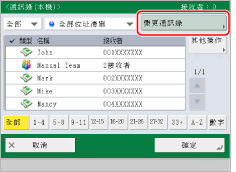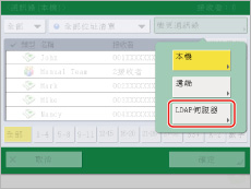 只有同時註冊「遠端通訊錄」和「LDAP伺服器」,才會出現[變更通訊錄]。若僅在本機器上註冊了「LDAP伺服器」,則顯示[至LDAP伺服器]。