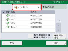 不能直接將透過伺服器獲得的接收者指定為轉傳接收者。若要將其指定為轉傳接收者,必須先將其儲存在「本機通訊錄」中。 (See "註冊透過LDAP伺服器獲得的位址.")