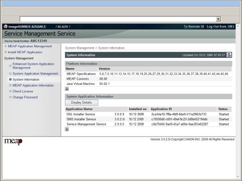 可以確認與平臺(如Java Virtual Machine)相關的版本資料,以及系統應用程式的版本資料、安裝日期和當前狀態。