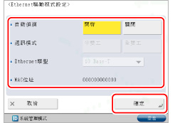 本機器自動確定Ethernet類型。除非要指定特定的Ethernet設定,否則請按[開啟]。