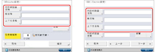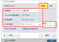 若使用Bindery PServer時,設定了列印伺服器密碼,按[列印伺服器密碼]→輸入密碼→按[確定]。
