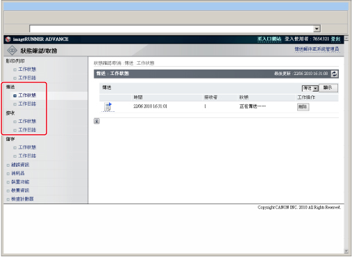 可以從轉傳狀態螢幕檢查轉傳工作的詳細資訊。有關詳細資訊,請參閱"傳送/接收傳真."